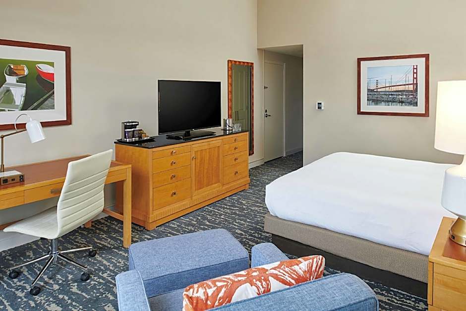 Berkeley Marina view, balcony or patio, large chair, workspace, 32-inch TV, WiFi. Make yourself at home in this king room and sink into the Sweet Dreams® bed. Soak up the Berkeley Marina views from your private balcony or patio. Relax in the large chair and watch the 32-inch TV. Make use of the workspace and catch up with business. Stay connected with WiFi. The stylish bathroom is complete with granite vanity, plush towels and indulgent bath products.